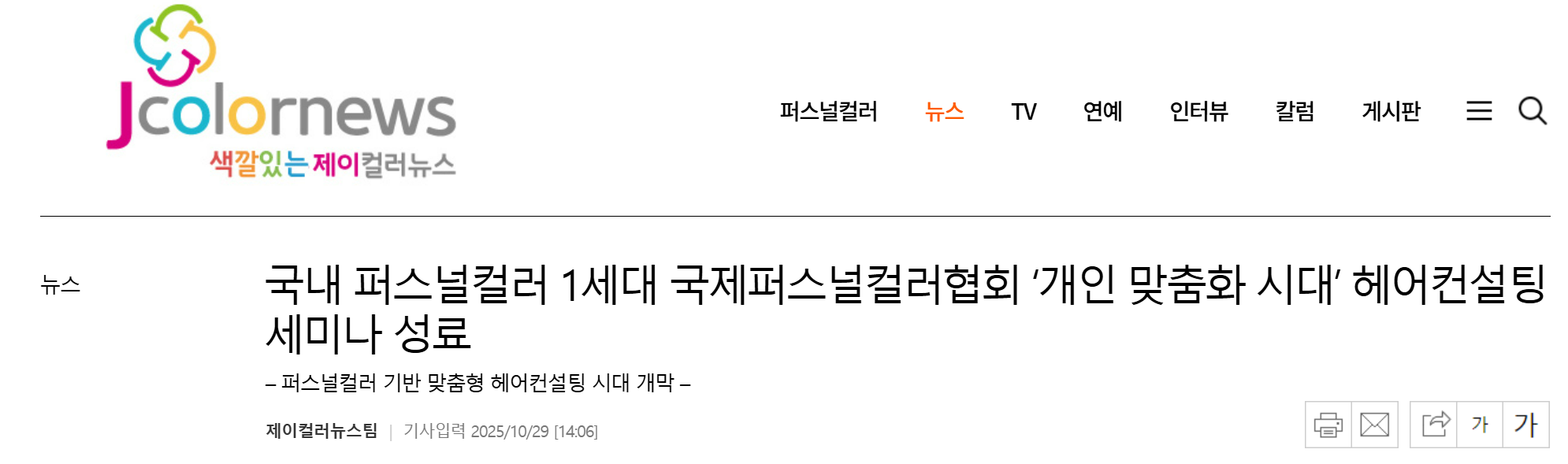 출처: 국내 퍼스널컬러 1세대 국제퍼스널컬러협회 ‘개인 맞춤화 시대’ 헤어컨설팅 세미나 성료-제이컬러뉴스 – https://www.jcolornews.com/440