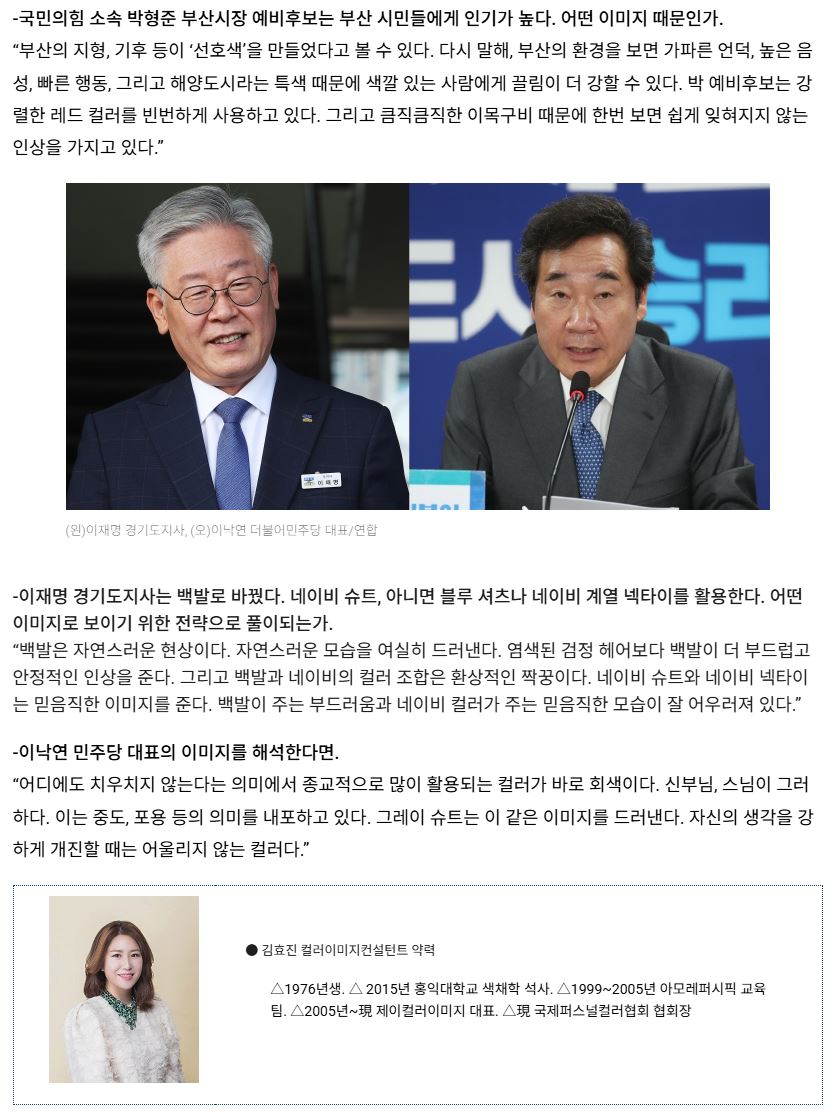 국제퍼스널컬러협회 김효진 회장의 정치인 이미지 분석