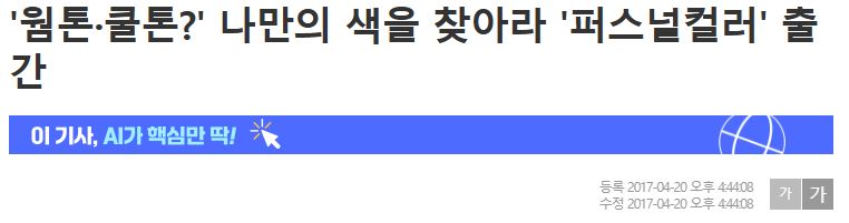 [이데일리 e뉴스 정시내 기자] 자신의 개성을 살리는 ‘퍼스널컬러’에 대한 관심이 높아지고 있다.
